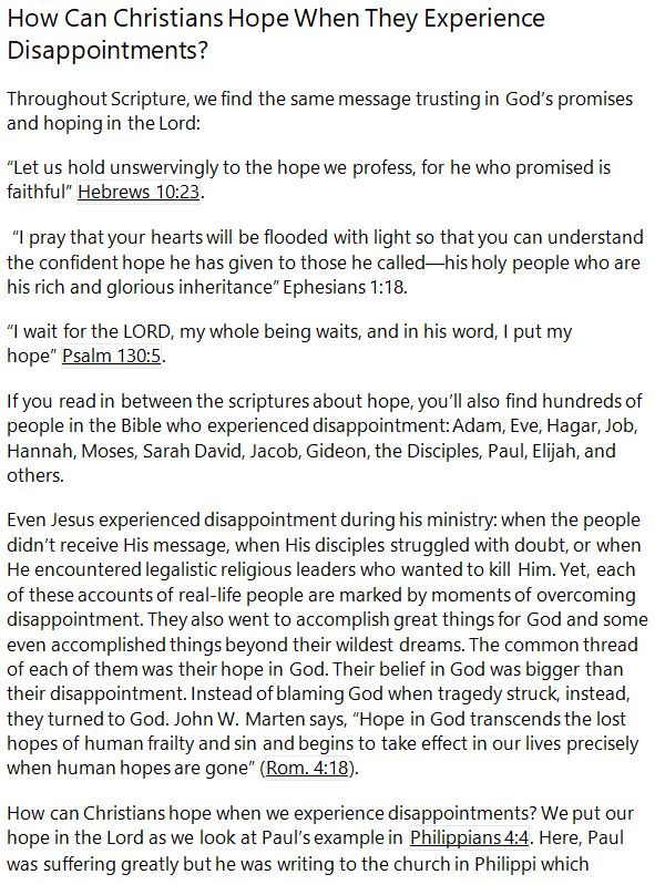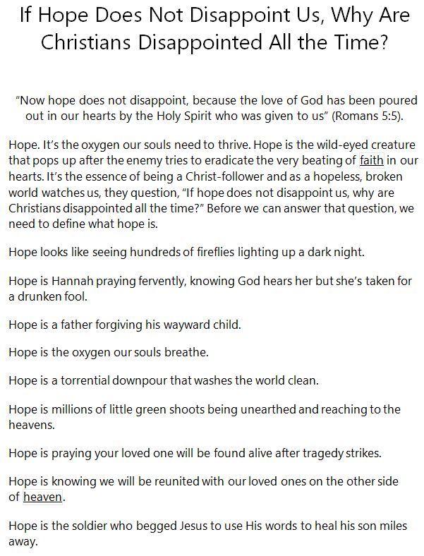 If Hope Does Not Disappoint Us, Why Are Christians Disappointed All the Time?