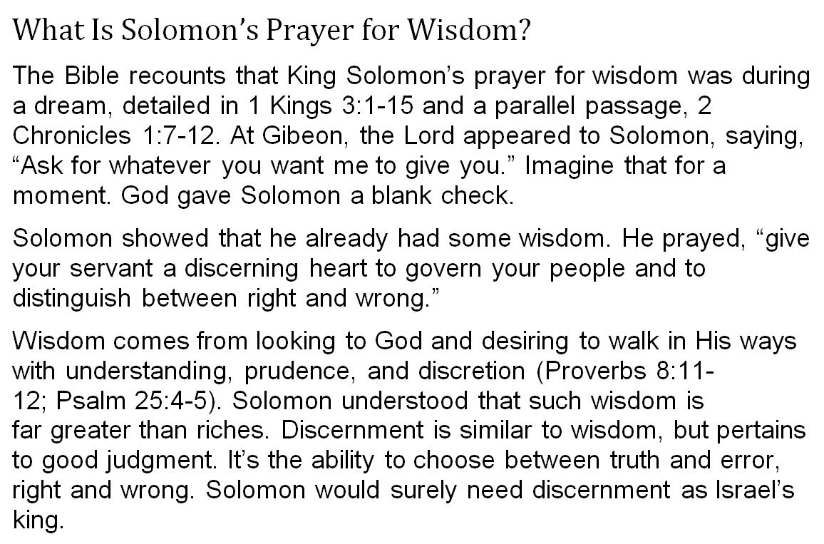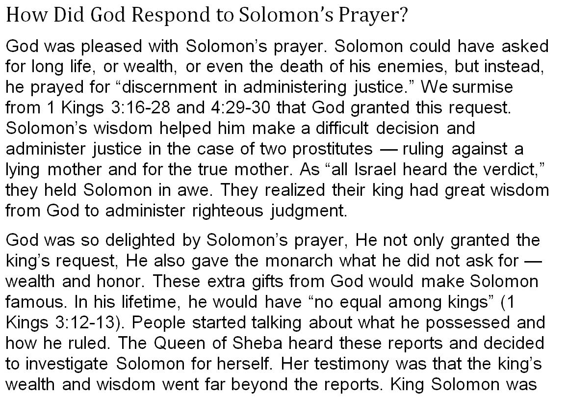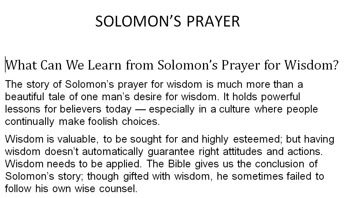 SOLOMON’S PRAYER